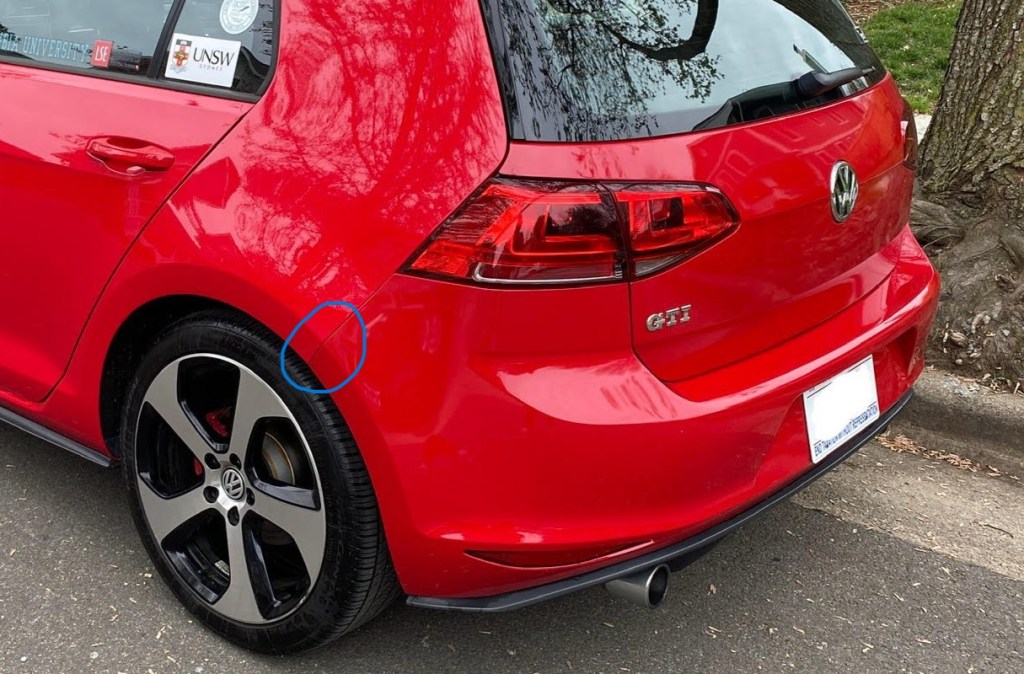 Things came to a head in midsummer 2023 and then cascaded from there. In July, I decided I would stop worrying and learn to love this new GTI, and I ordered a Cobb Accessport (a computer that allows owners to flash modified tunes on their cars at home) to get some of the old flare of my APR Stage 1 tuned 2013 back. I set it up, and was super excited. Then I went to an anime convention and two days later came down with a heavy case of COVID (for the first time, as far as I’m aware). Feeling awful and running a 102 fever, I drove to my mom’s house in Virginia to quarantine there so someone could bring me food and medicine more easily (thanks mom). After a few days into the disease and I was feeling slightly better, I decided to go out and admire how gorgeous my car truly was — under the summer sun in that moment, it took my breath away. And then I noticed; the rear bumper panel was a slightly darker, duller shade of red than the rest of the body.